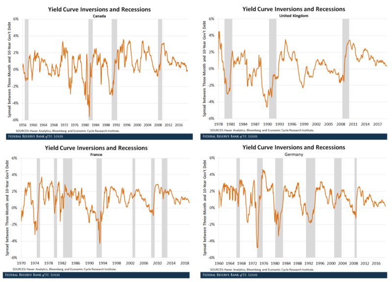 Also, the yield curve has a bit of a dubious record outside the US, as this study from the St. Louis Federal Reserve points out. Several yield curve inversions occurred in the U.K. and Canada that did not predate recessions, i.e., you had a lot of false signals. But it worked better in the US, France, and Germany.